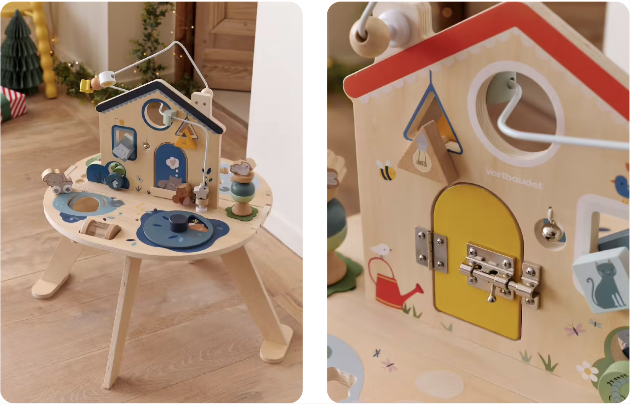 La table d’activités évolutive pliable : idéale pour explorer, manipuler et s’amuser à volonté.