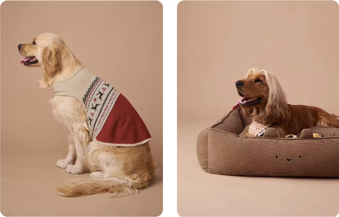 Pulls de Noël assortis, paniers moelleux et accessoires stylés : cette année, même les compagnons à quatre pattes font partie de la fête !
