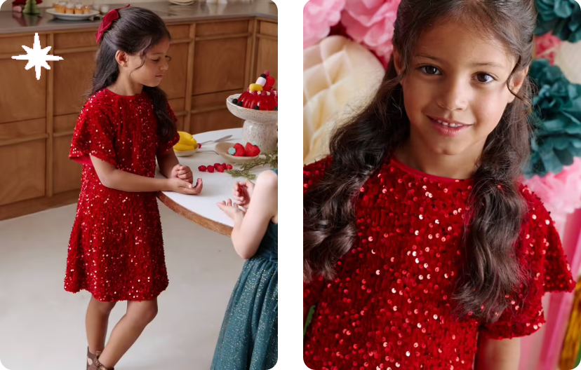 Robe en velours et sequins rouge : un classique irrésistible pour les ptits choux.