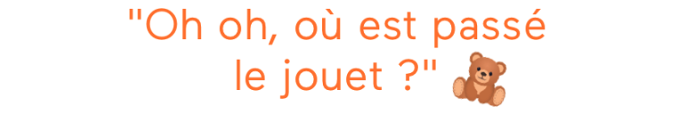 Prends le jouet préféré de ton bébé et montre-le-lui avec un grand sourire puis, cache-le doucement sous une couverture ou derrière un coussin tout en disant joyeusement :