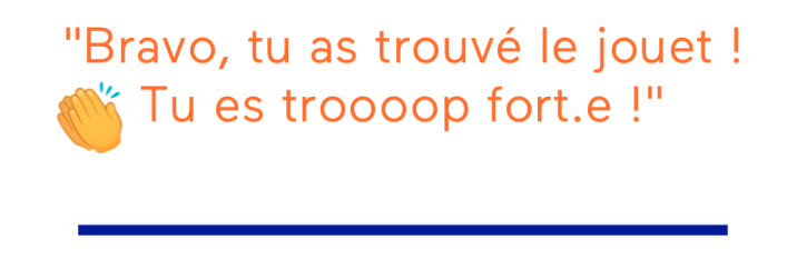Encourage le à chercher le jouet et surtout lorsque ton bébé trouve le jouet, applaudis et félicite-le chaleureusement :